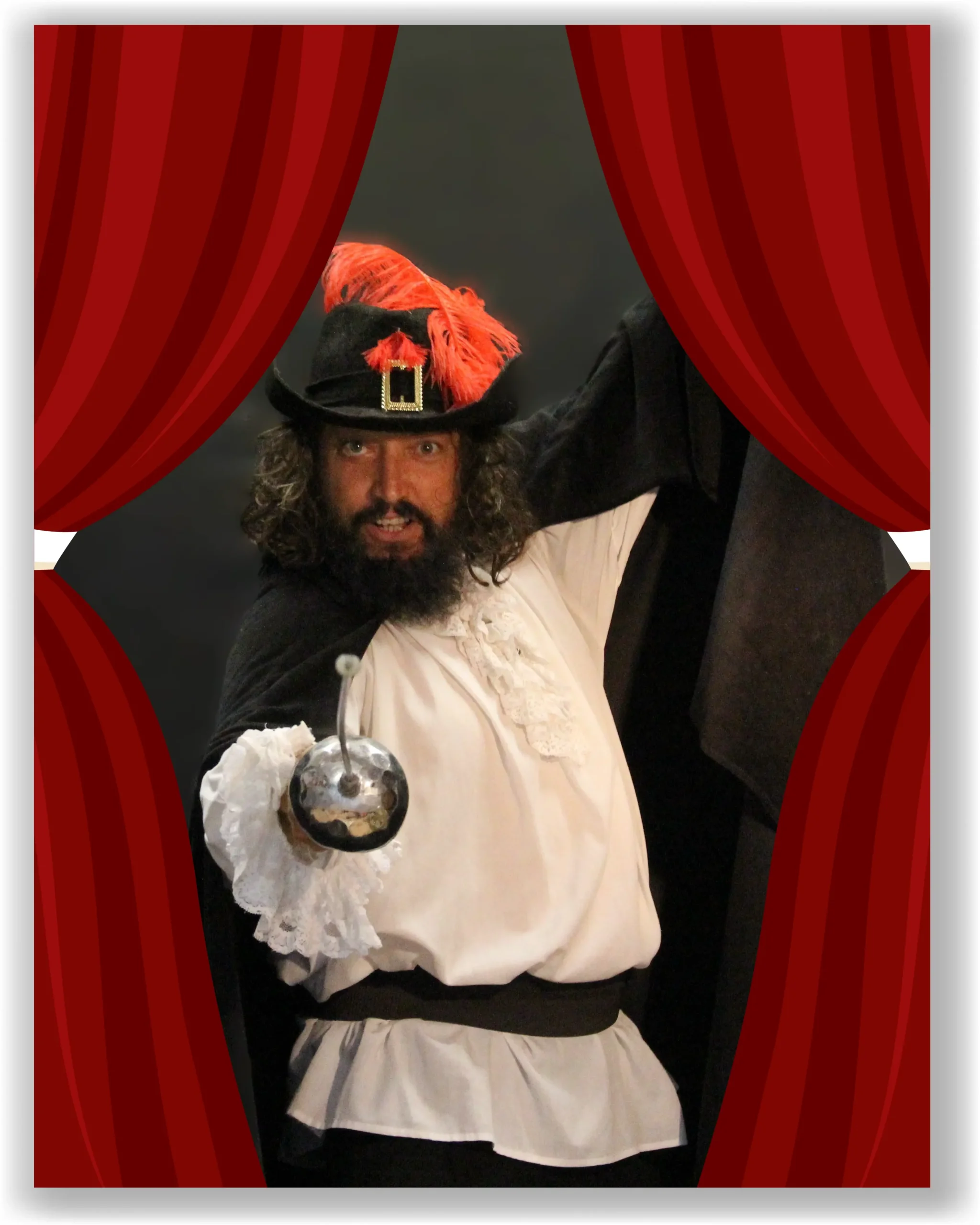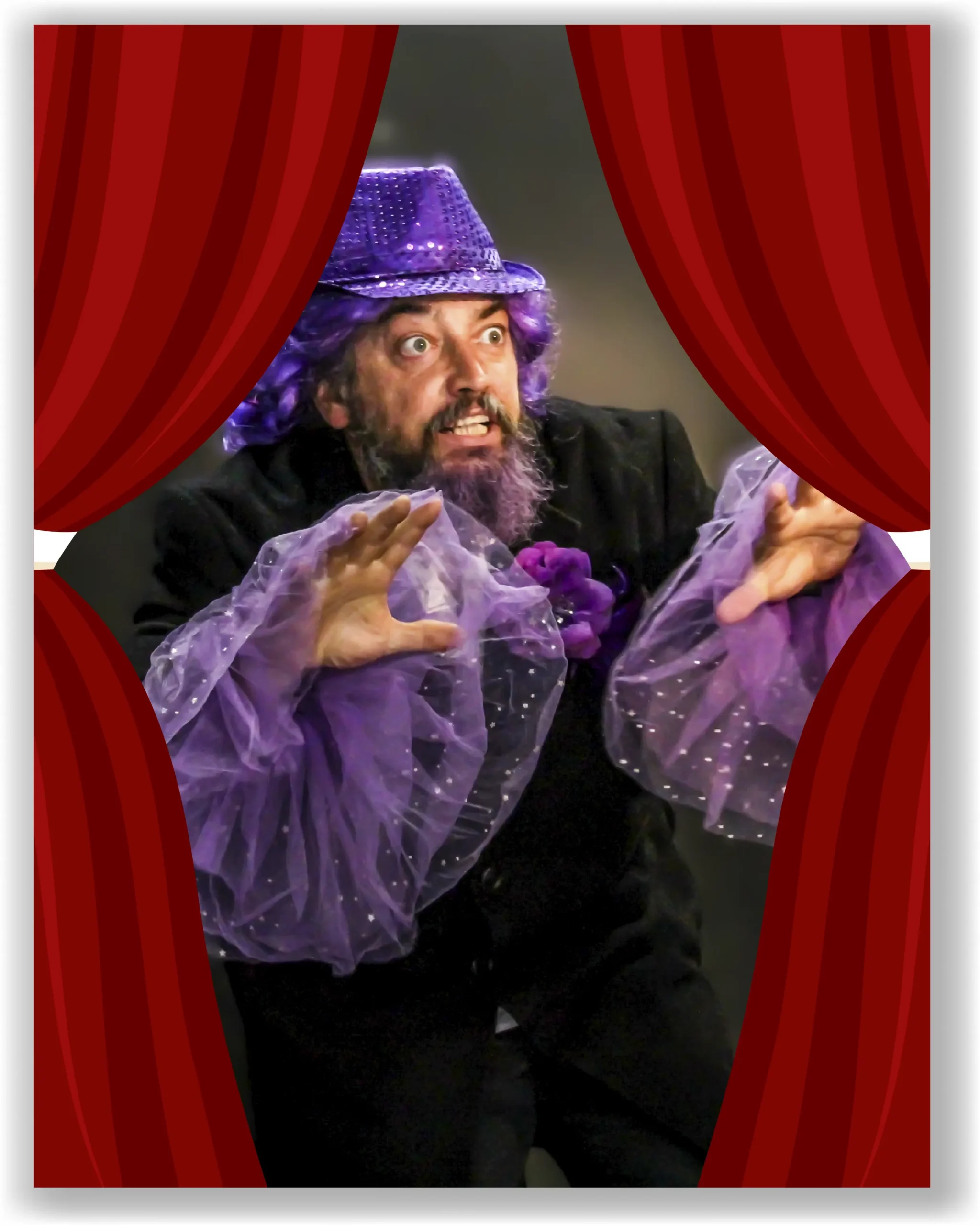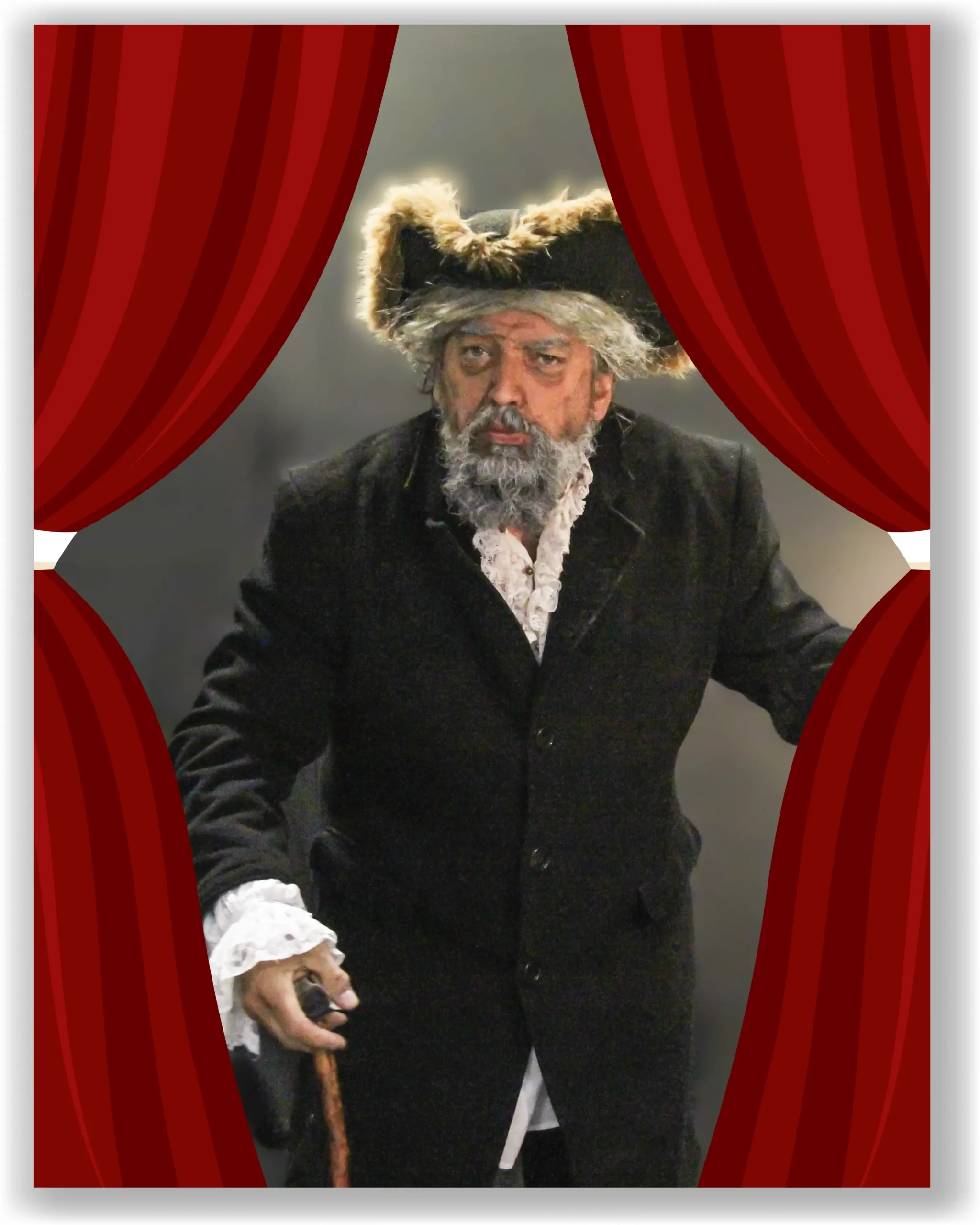 Un viajero incansable con un carromato lleno de historias y el corazón lleno de sonrisas. Improvisa cuentos con cualquier cosa que se cruce en su camino, cambiando imaginación por alegría. Cada parada es un espectáculo y cada relato, una sorpresa.